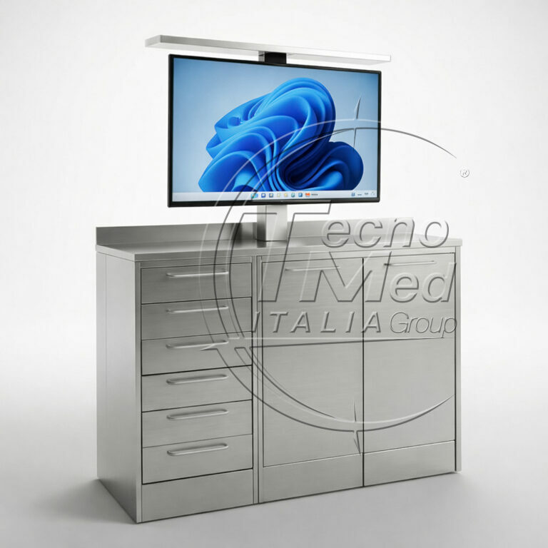 I mobili multimediali in acciaio inox integrano monitor e tecnologia digitale in strutture resistenti e igieniche. Ideali per ambienti medicali e odontoiatrici, garantiscono funzionalità, durabilità e massima facilità di pulizia, migliorando l’organizzazione e la gestione delle postazioni di lavoro.