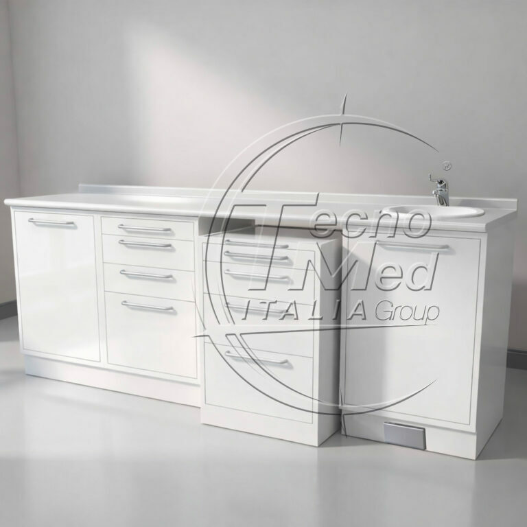 Cabinet compositions provide complete, functional solutions for workspace organisation. Designed for medical and dental environments, they combine modular cabinets, tops and storage units in ergonomic layouts that enhance efficiency, order and everyday comfort.