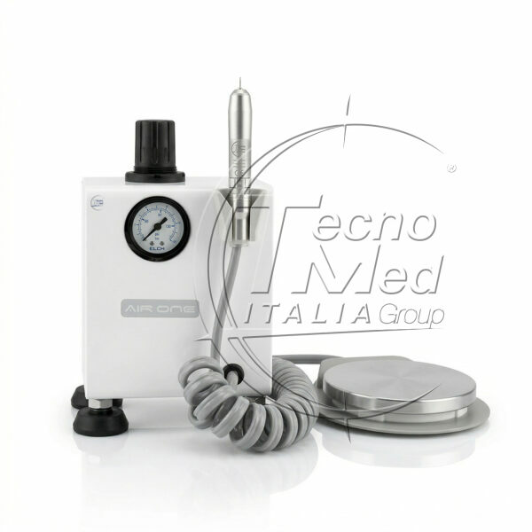 Kit including AIRONE 1-way turbine control unit, laboratory turbine and pneumatic foot pedal.