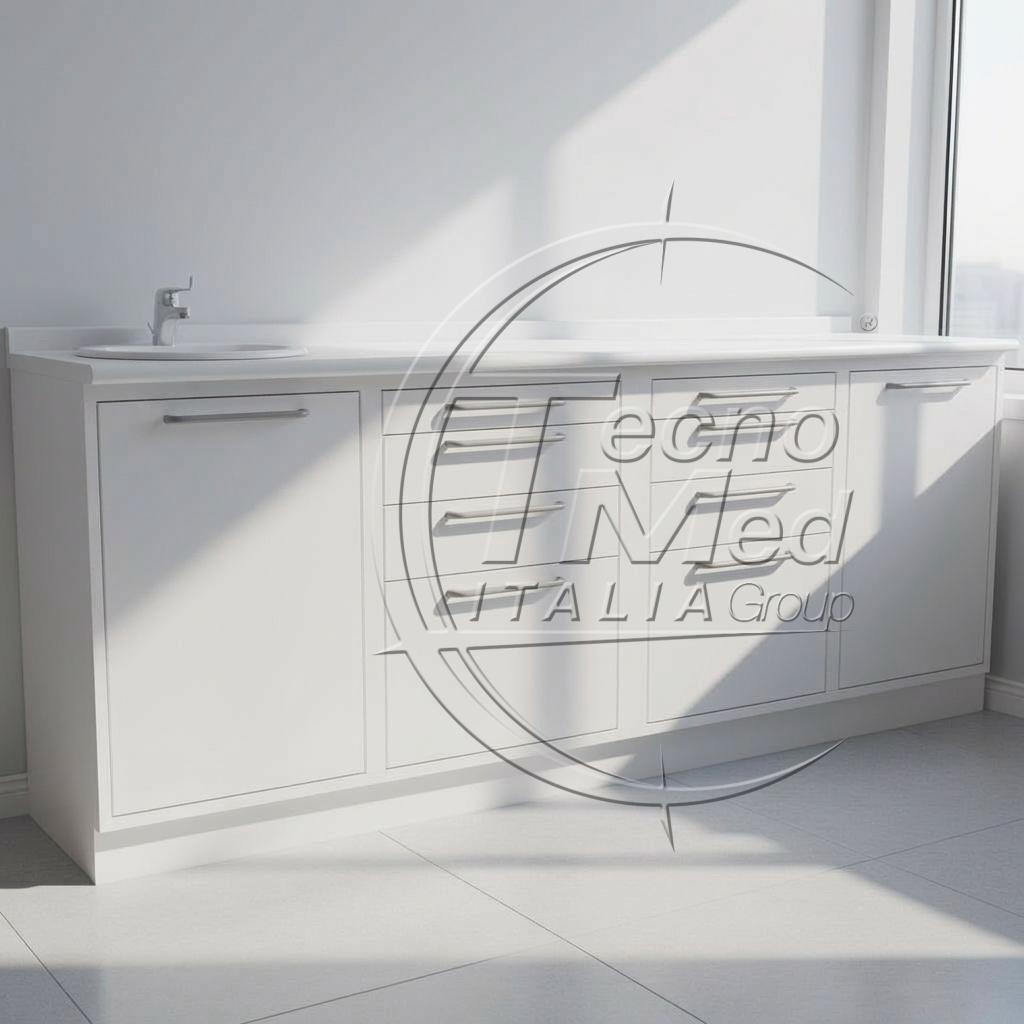 The sterilisation cabinet with left-hand sink is designed to deliver versatility, hygiene and functionality in clinical and dental settings. Every feature reflects an ergonomic concept that enhances workflow efficiency and supports comfortable, precise movements throughout daily operations.