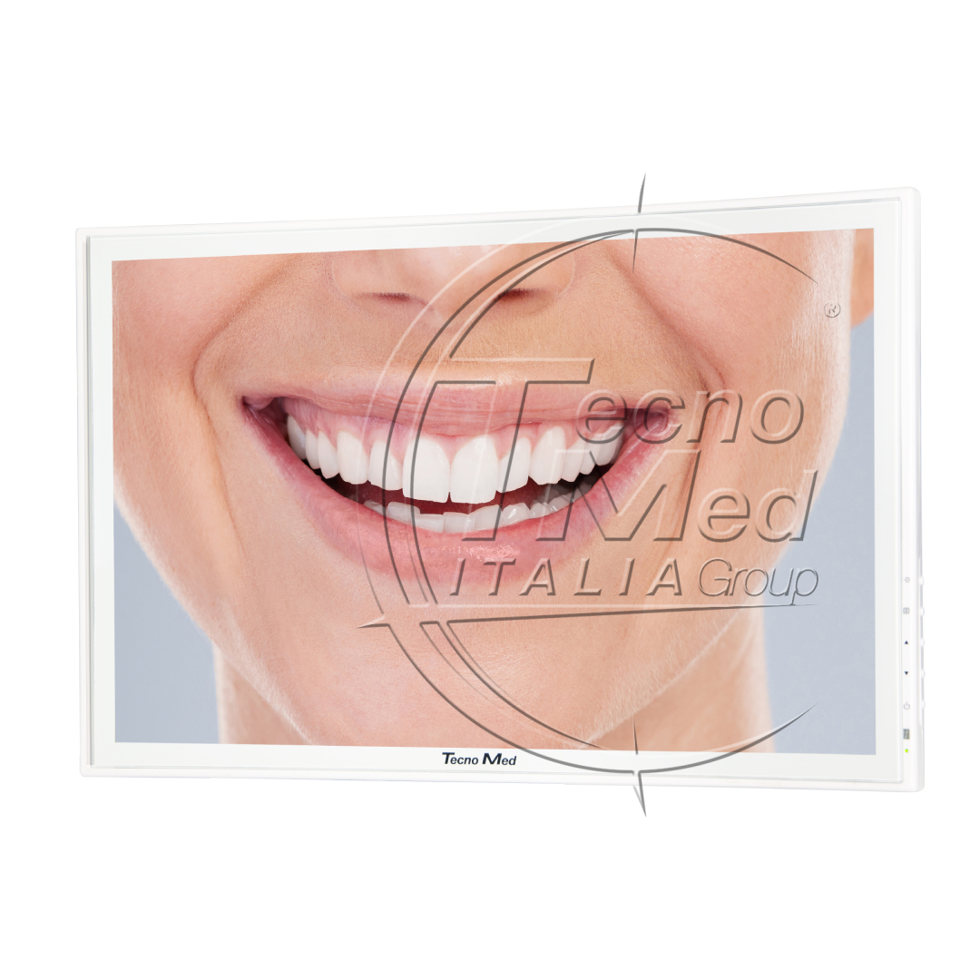 A protective glass panel makes the screen resistant to scratches, water and impacts, allowing frequent disinfection with medical-grade solutions while maintaining visual clarity. Perfect for dental surgeries, clinics and laboratories.
