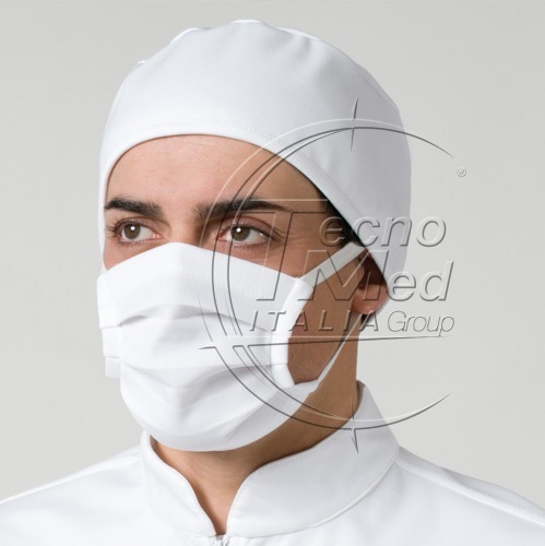 Autoclavable antimicrobial waterproof face mask in high-tech water-repellent fabric with antibacterial silver particles, quick drying performance and resistance up to 40 washes.