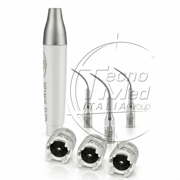 The Titanus ELED TKD handpiece is suitable for scaling, periodontal treatments, endodontics and prophylaxis, using KaVo-compatible ultrasonic inserts and tips.