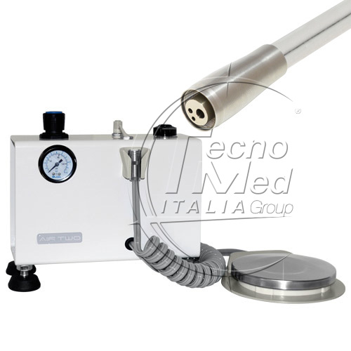 Air Two è un controllo per turbina con spray integrato, completo di serbatoio da 250 ml, filtro, comando on/off acqua spray e pedale di comando. È inoltre possibile regolare la pressione dell’aria e dell’acqua spray tramite appositi comandi.