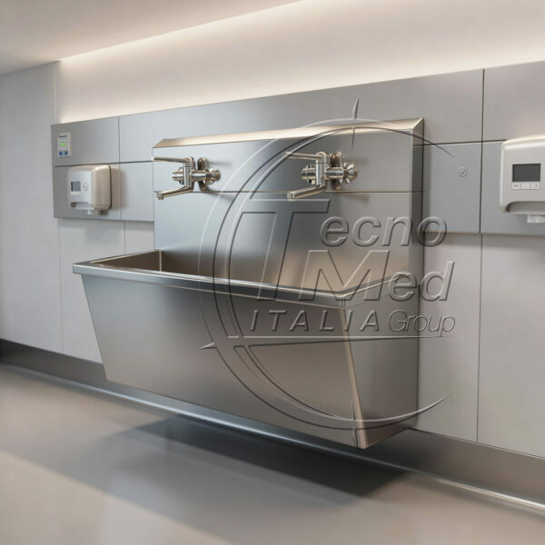 Il lavabo chirurgico a postazione doppia è una soluzione strutturale progettata per ambienti medicali ad alta intensità operativa che richiedono due postazioni di lavaggio indipendenti.