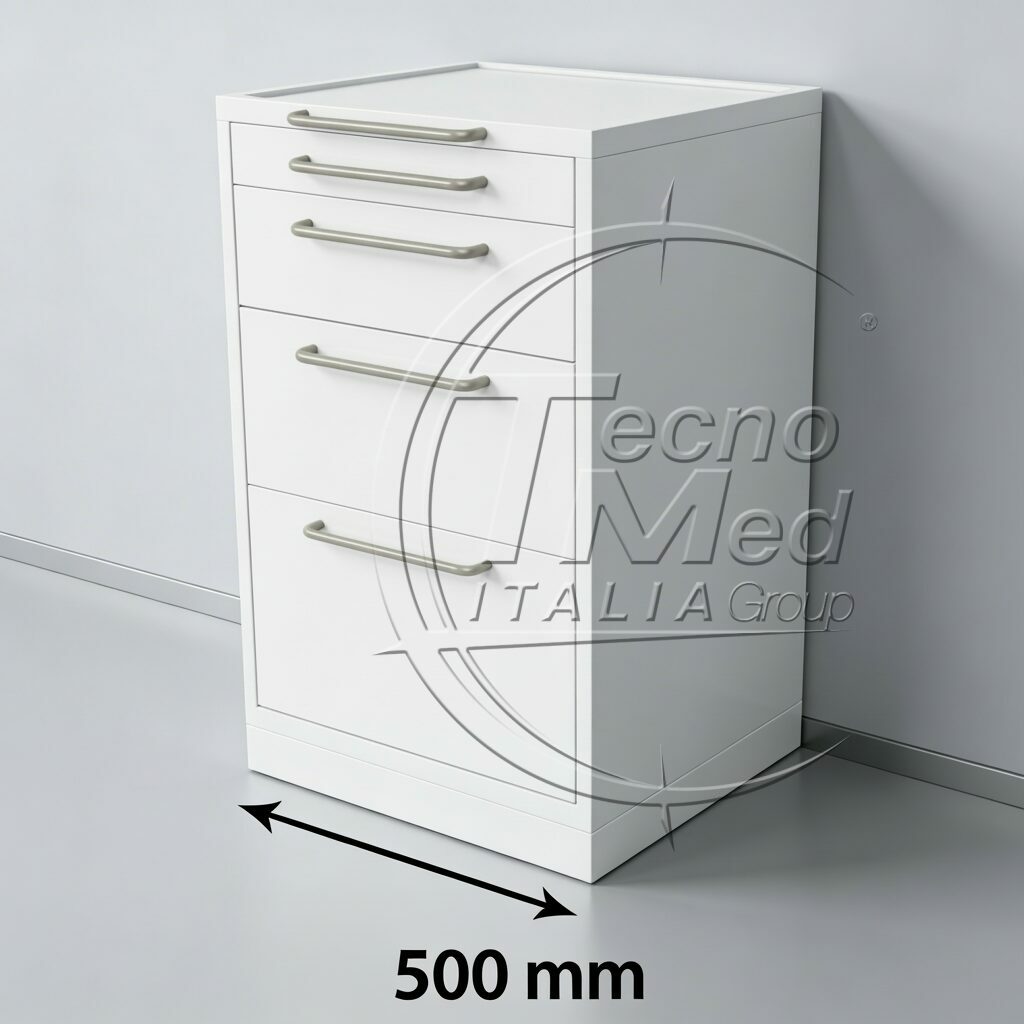Il design essenziale valorizza superfici pulite e facilmente sanificabili, fondamentali in qualunque contesto clinico. I quattro cassetti permettono di suddividere in modo chiaro gli strumenti e il materiale necessario, rendendo ogni procedura più rapida e organizzata. La disposizione interna semplifica la gestione dei flussi di lavoro e riduce i tempi di preparazione.