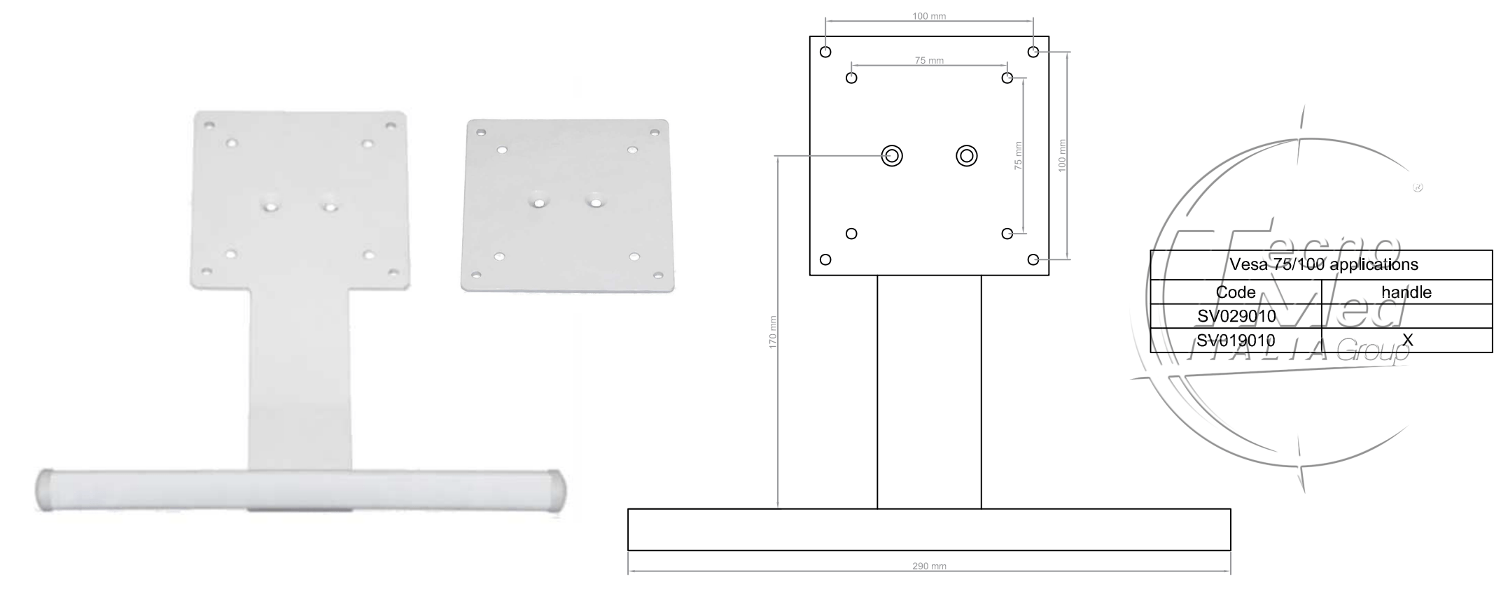 SV029010: piastra di supporto VESA per collegamento monitor a braccio.